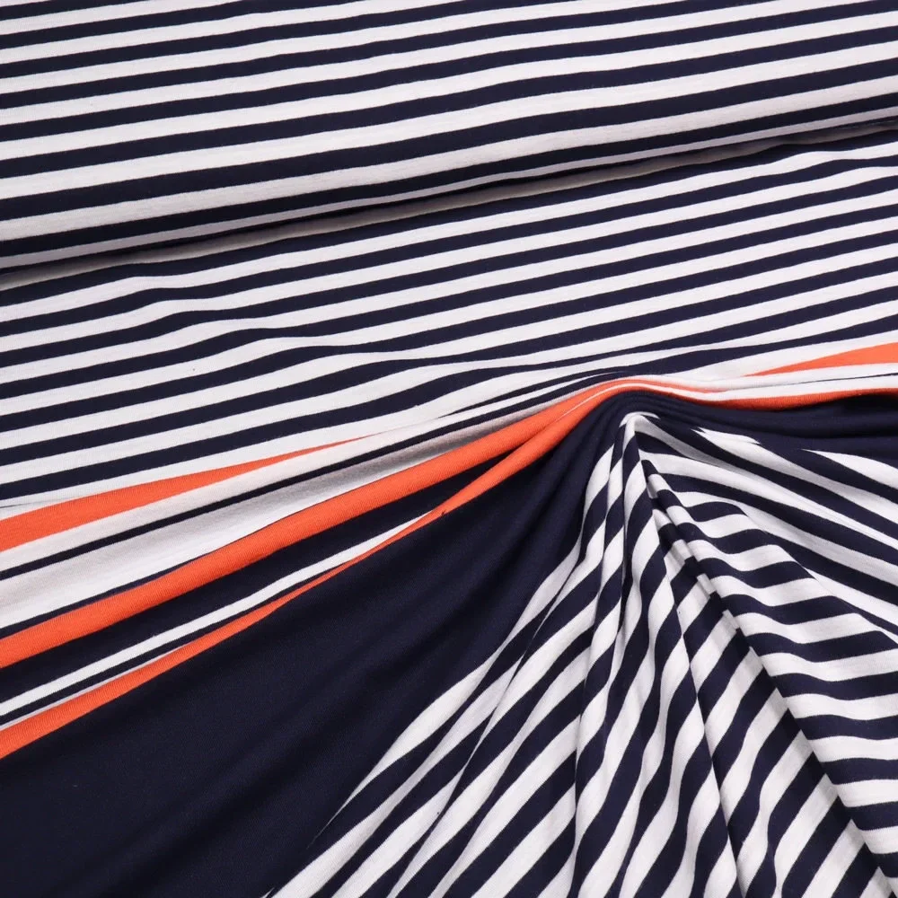 Jerseypanel Querstreifen marineblau/weiß/lachs