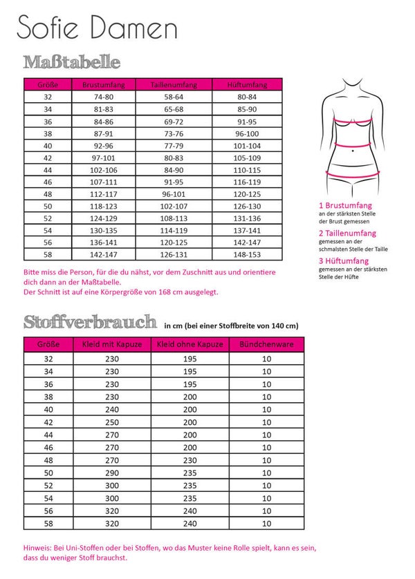 Papierschnittmuster Sofie Damen, Größe 32-58