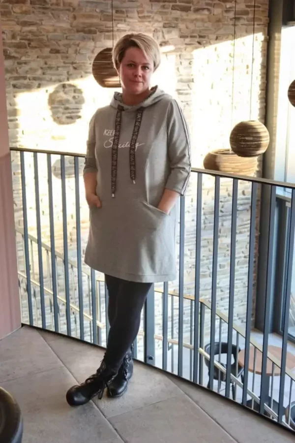 Beim Kleid Sofie bietet die raffinierte Teilung im Vorderteil einen echten Blickfang und eine gute Basis für tolle Stoffkombinationen. Die unsichtbar in die Teilung integrierten Taschen bieten genug Platz. Und ob du das neue Kleid mit oder ohne Kapuze nähen willst, entscheidest du einfach selbst.