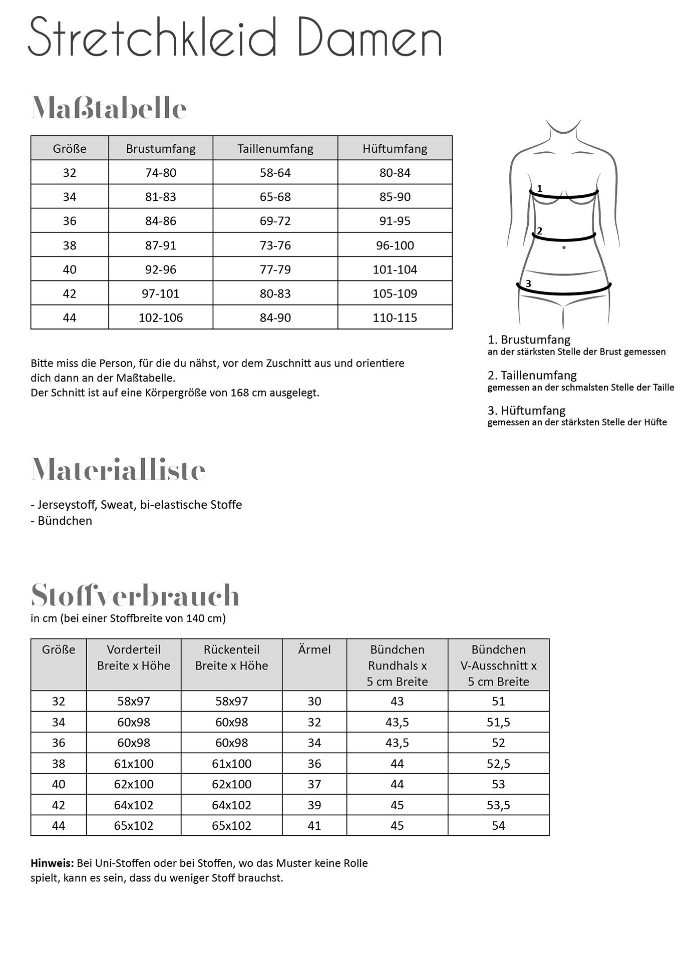 Papierschnittmuster Stretchkleid Carolin, Größe 32-44.