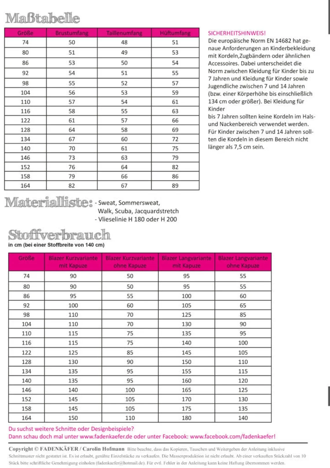 Schnittmuster Blazer Kinder von Fadenkäfer