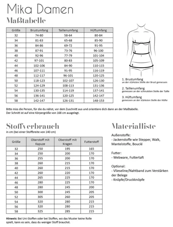Papierschnittmuster Mantel Mika Damen, Größe 32-58