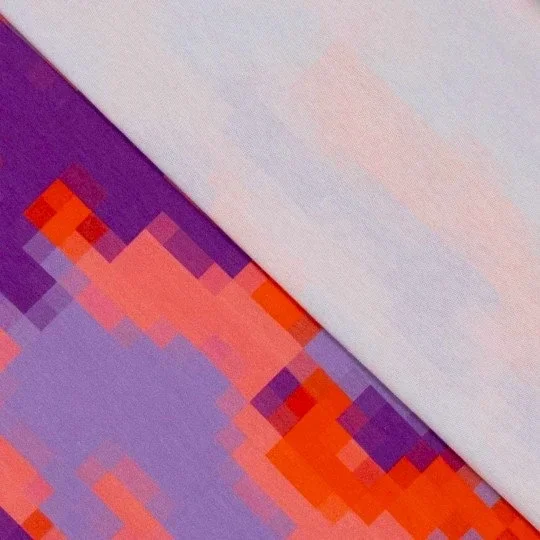 Sommersweat mit Pixelmuster in Lila- und Orangetönen.