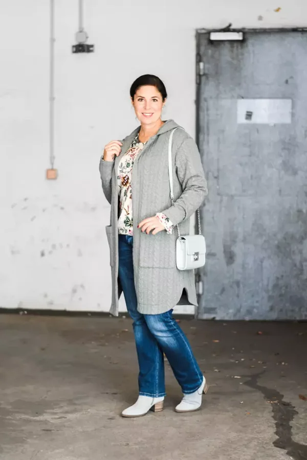 Der Coatigan kann mit Kapuze oder Kragen genäht werden, er hat optional aufgesetzte Taschen und wird mit Knöpfen geschlossen.