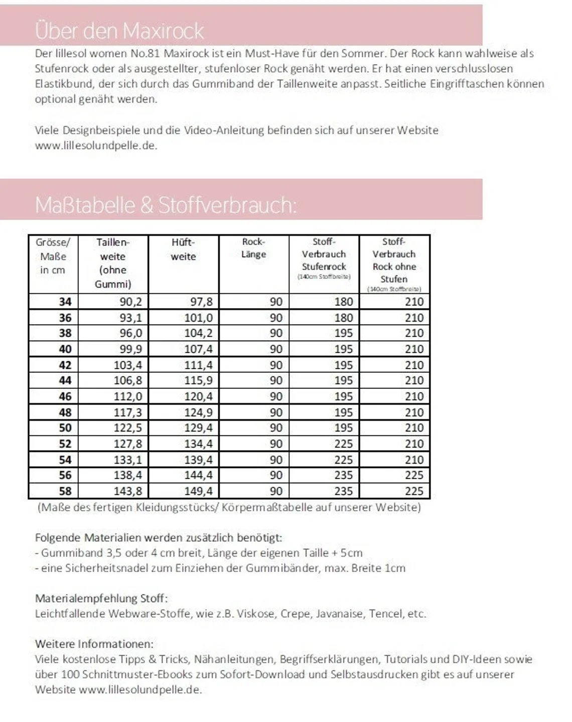Papierschnittmuster lillesol women No.81 Maxirock *mit Video-Nähanleitung*✂✂✂