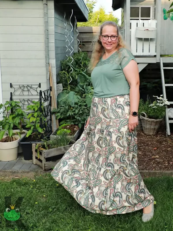 Der lillesol women No.81 Maxirock ist ein Must-Have für den Sommer. Der Rock kann wahlweise als Stufenrock oder als ausgestellter, stufenloser Rock genäht werden. Er hat einen verschlusslosen Elastikbund, der sich durch das Gummiband der Taillenweite anpasst. Seitliche Eingrifftaschen können optional genäht werden.