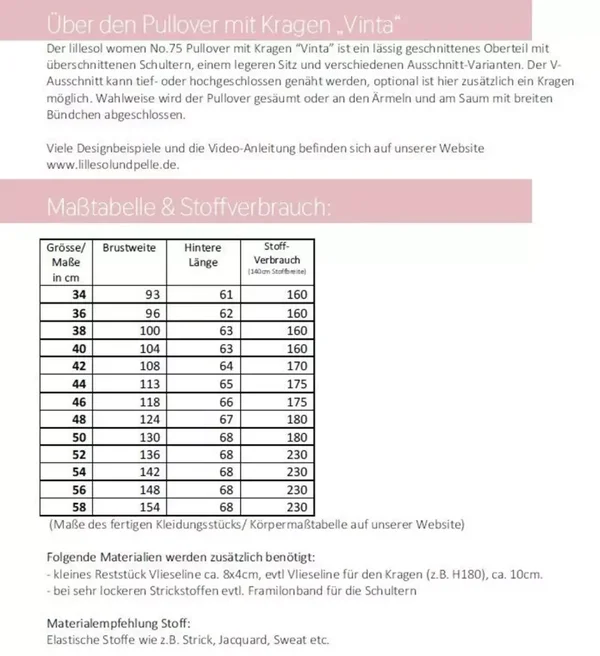 Schnittmuster Pullover mit Kragen "Vinta" lillesol women No. 76
