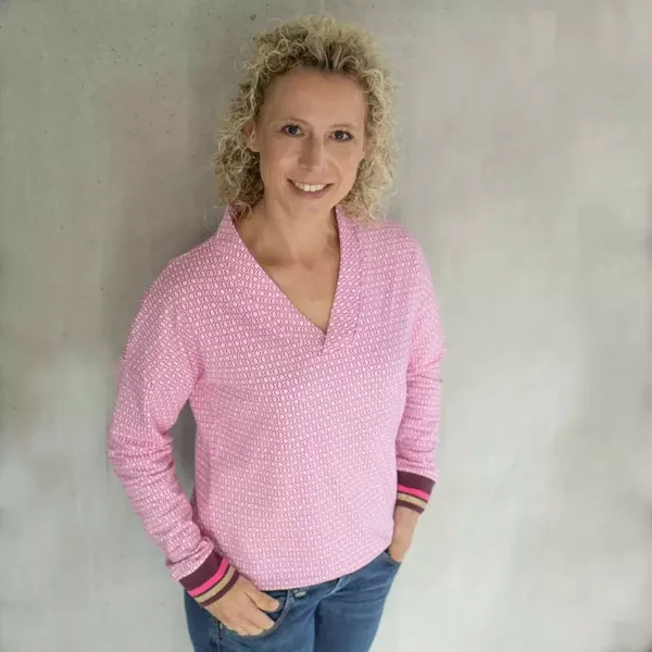Der lillesol women No.76 Pullover mit Kragen “Vinta” ist ein lässig geschnittenes Oberteil mit überschnittenen Schultern, einem legeren Sitz und verschiedenen Ausschnitt-Varianten. Der V-Ausschnitt kann tief- oder hochgeschlossen genäht werden, optional ist hier zusätzlich ein Kragen möglich.