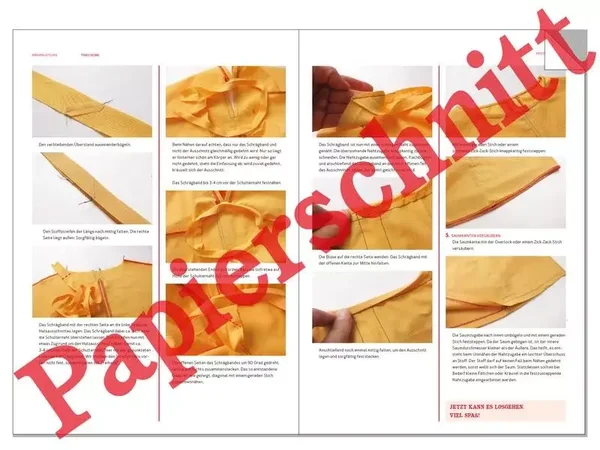 SCHNITTMUSTERBOGEN auf Papier mit farbig gedruckter Fotonähanleitung