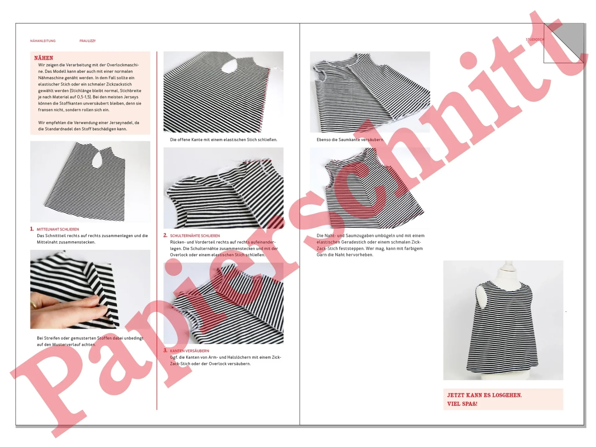 Papierschnittmuster mit gedruckter Fotonähanleitung