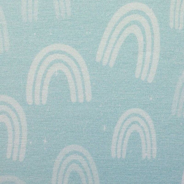 Mintfarbener Baumwolljersey mit Regenbögen.