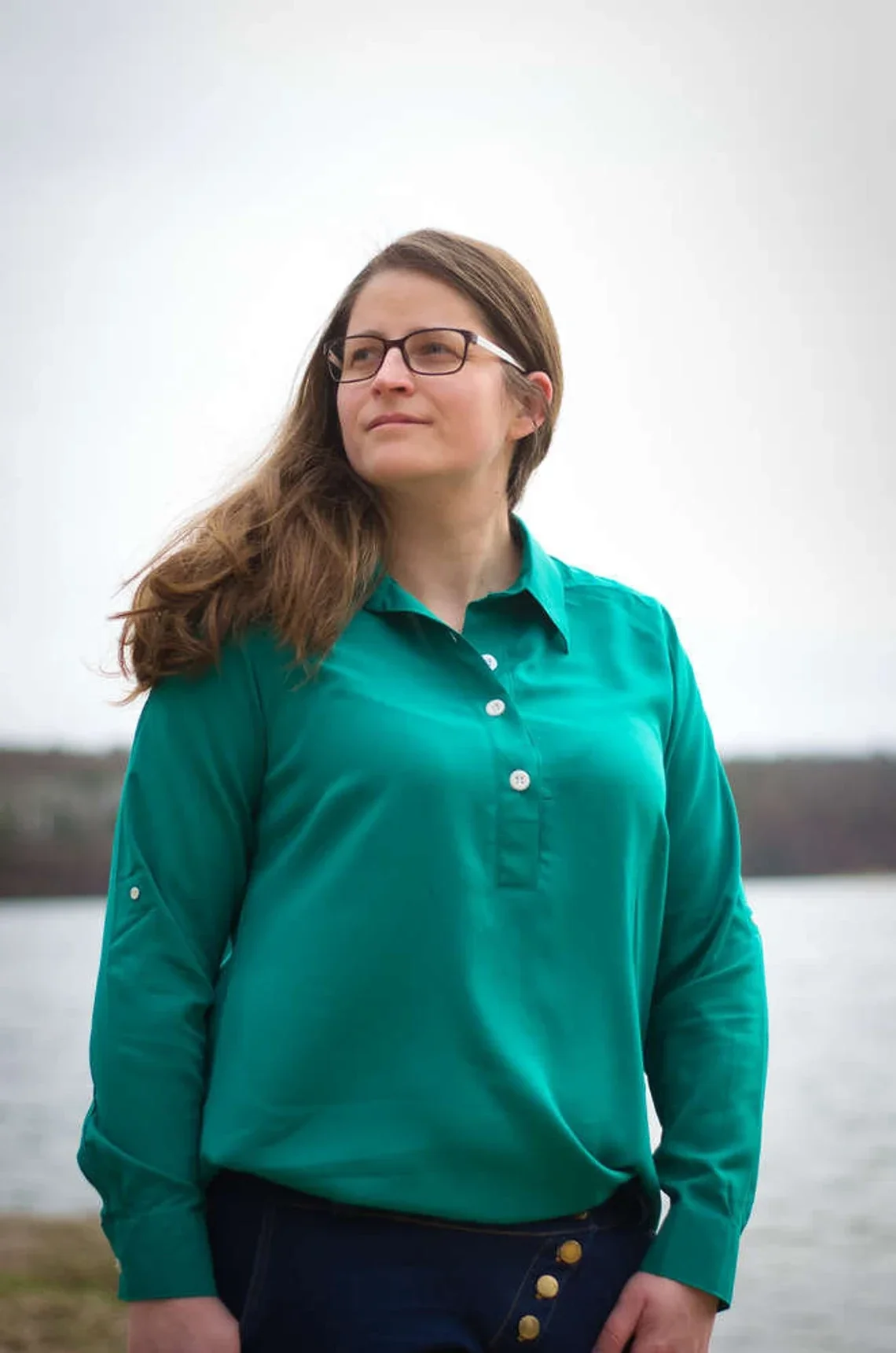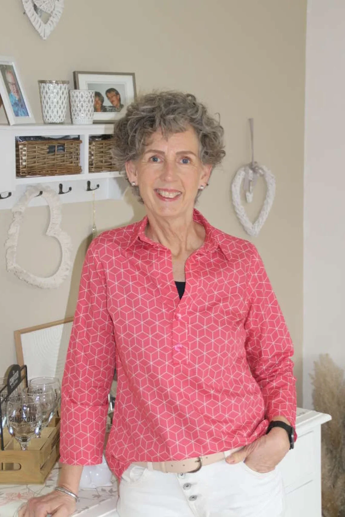 Die lillesol women No.79 Hemdbluse “Linnea” ist ein leger geschnittenes Blusenshirt mit halber Knopfleiste und klassischem Steg mit Kragen. Die Ärmel können wahlweise mit Manschetten genäht oder einfach gesäumt werden.