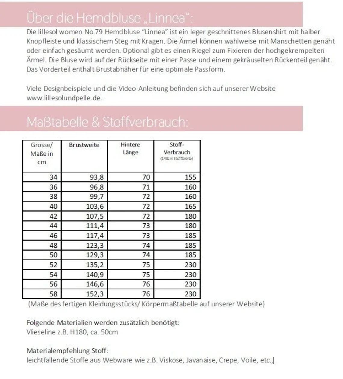 Papierschnittmuster lillesol women No.79 Hemdbluse "Linnea" *mit Video-Nähanleitung*✂✂✂