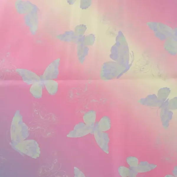 Dünner Regenmantelstoff mit Schmetterlingen und Farbverlauf.