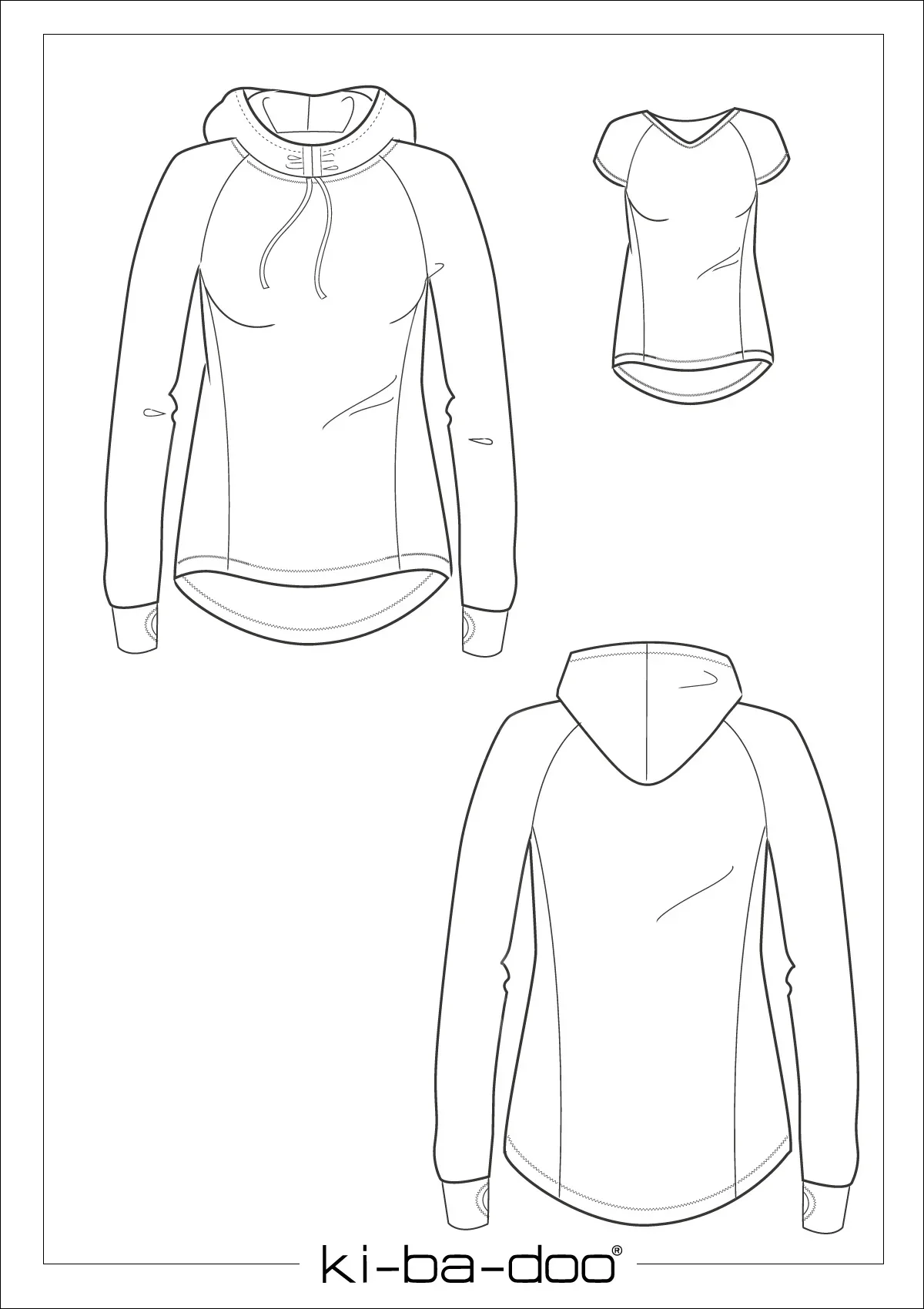 Papierschnitt Sport Hoodie + Shirt Damen von Ki-ba-doo