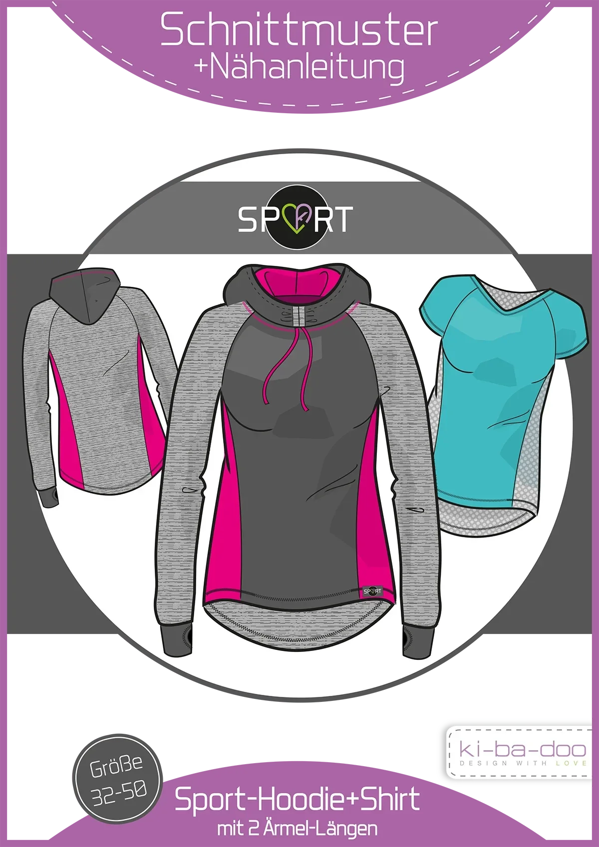 Ki-ba-doo SPORT ist eine Kollektion, die speziell für bi-elastische Funktionsstoffe erstellt wurde. Denn diese erfordern eine andere Schnittführung und Gradierung als Schnitte für normale elastische Stoffe. Mit vielen kleinen und großen Details wurde hier gearbeitet. Alles soll funktionell und trotzdem sehr modisch sein. Denn du willst ja auch optisch eine gute Figur beim Sport machen. Der erste Teil der Kollektion umfasst eine Sporttight, ein Shirt/Hoodie und ein Bustier.