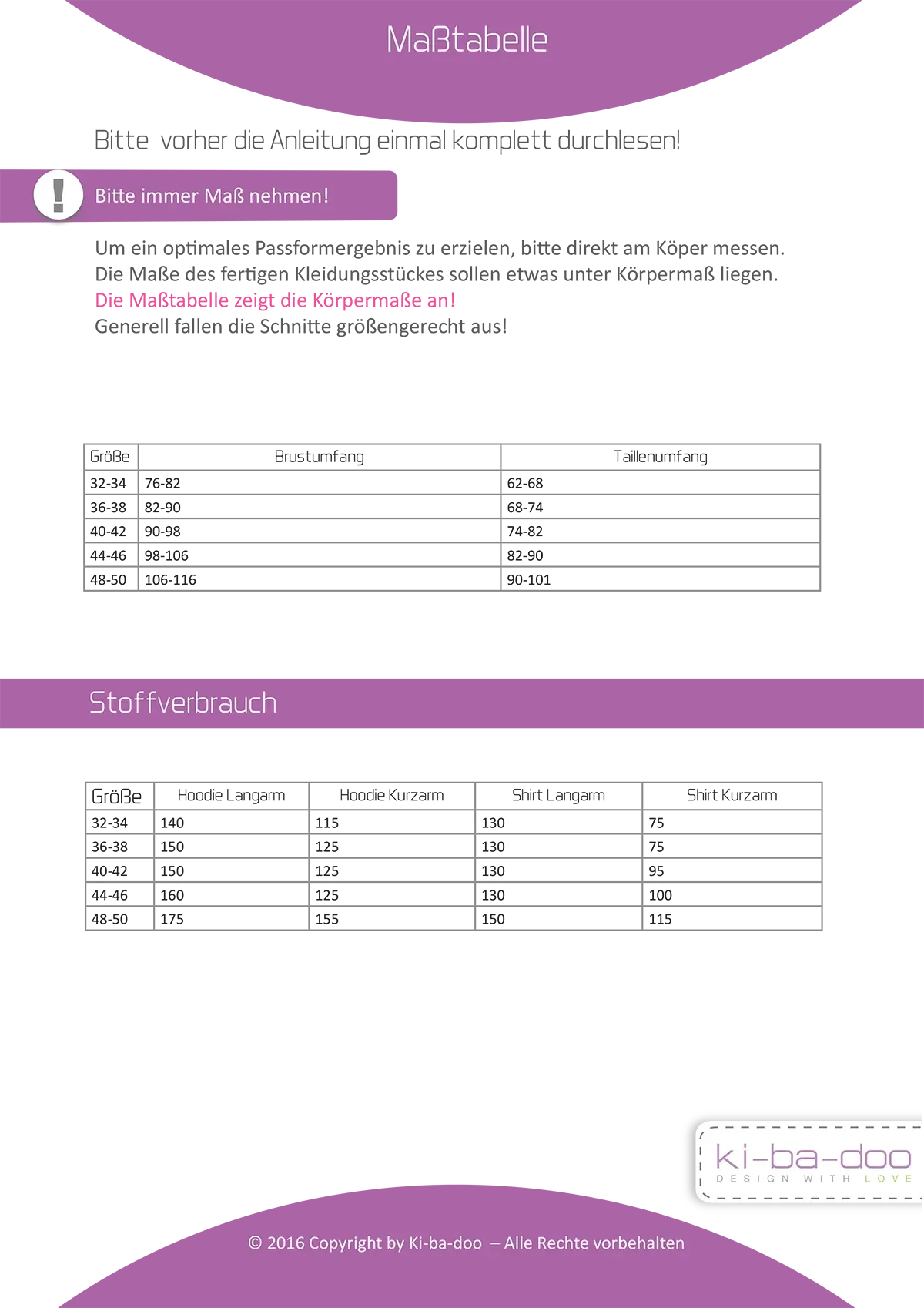 Dieses Schnittmuster enthält keine Nahtzugabe.