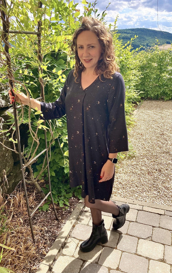 Flora kann als Bluse oder Tunika genäht werden und wird durch die Falte im Vorderteil zu einem echten Hingucker. Wahlweise kannst du deine Flora mit kurzen Ärmeln oder mit langen Ärmeln nähen. Auch ¾-Ärmel sind im Schnittmuster enthalten, ebenso wie seitliche Taschen.