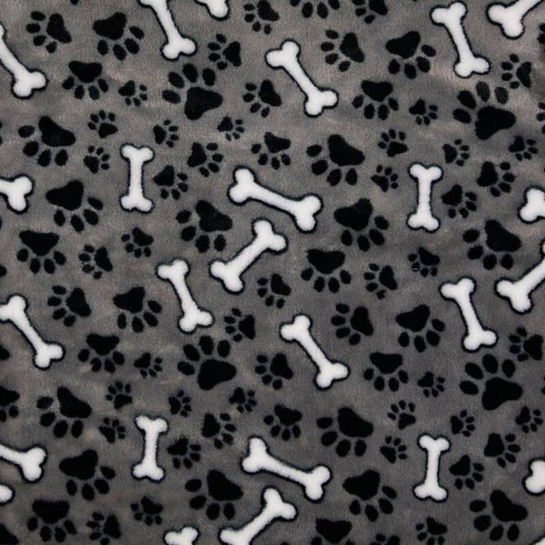 Flanell- Fleece flauschig in grau mit Knochen und Pfoten.
