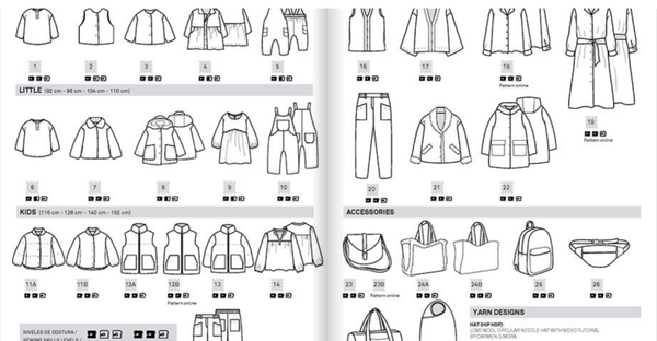 Schnittmuster und Anleitungen sind in dieser Zeitschrift in Spanisch, Englisch, Französisch, Deutsch, Italienisch und Holländisch enthalten.