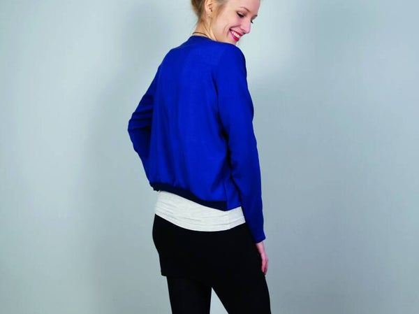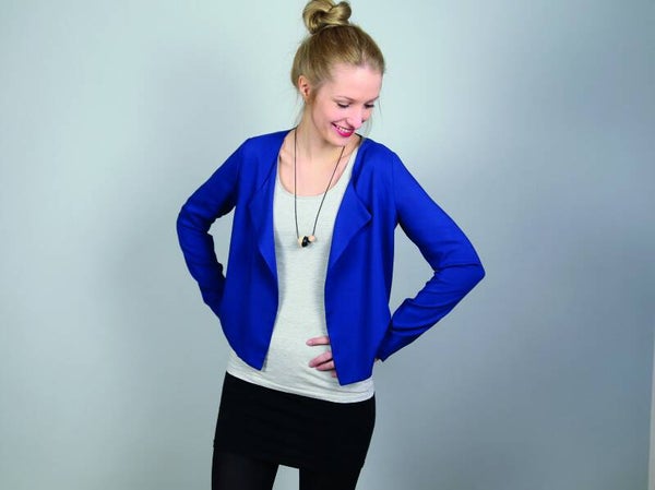 FRAU TOMMA ist eine lässige Jacke aus Viskose. Die gedoppelten Vorderteile mit extra breitem Übertritt fallen elegant in sich zusammen. Das Rückenteil wirkt durch das Saumbündchen wie ein sportlicher Blouson. Ein gekonnter Mix für alle Gelegenheiten! Du kannst mit FRAU TOMMA spielen - nähe die inneren Vorderteile in einer anderen Farbe, setze das Bündchen farbig ab, näh sie glänzend oder aus einem Material mit Wollanteil, sie wirkt immer wieder anders.