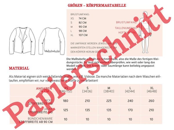 SCHNITTMUSTERBOGEN auf Papier mit farbig gedruckter Fotonähanleitung