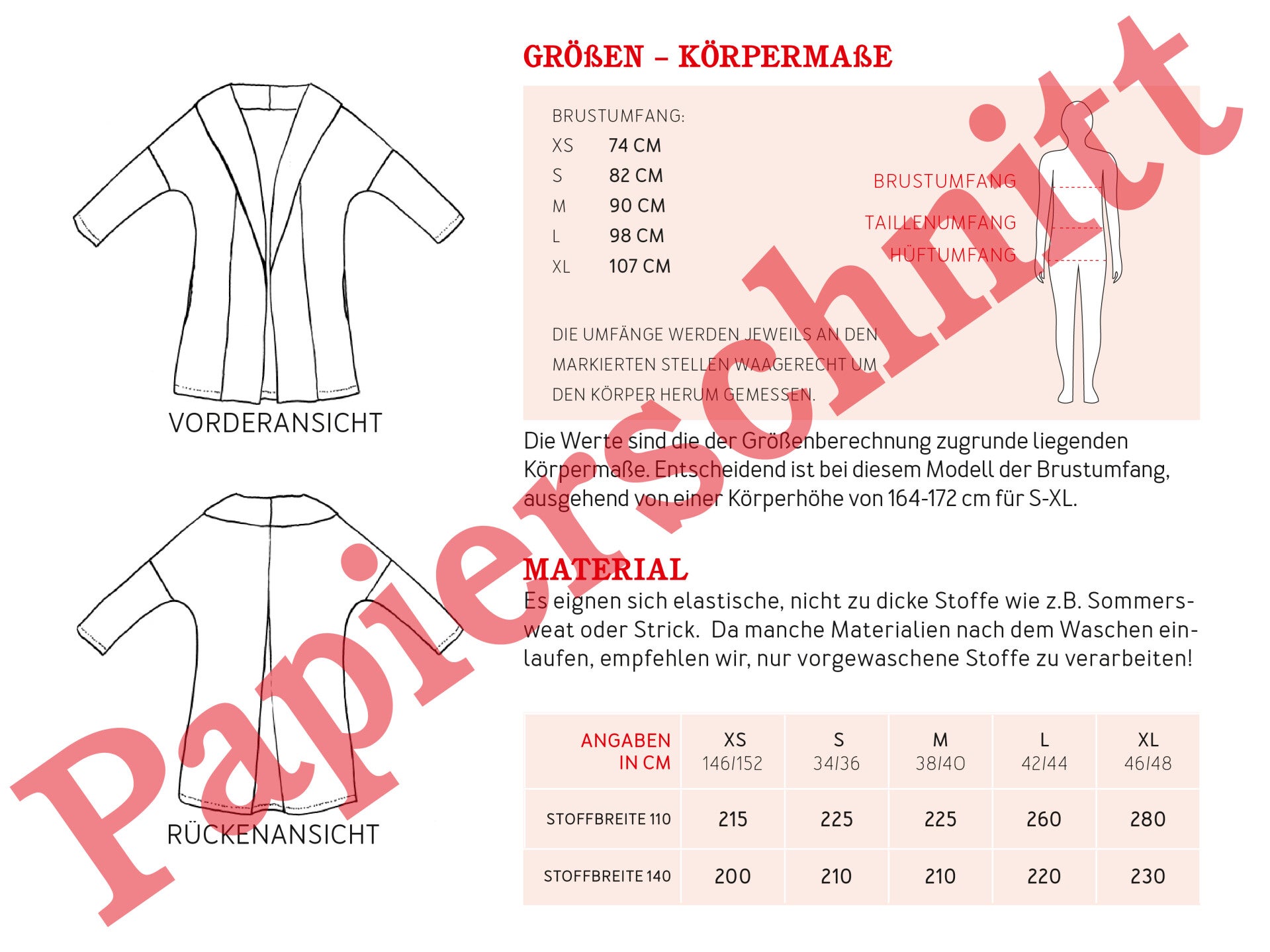 - Materialempfehlung: elastische, nicht zu dicke Stoffe wie z.B. Sommersweat oder Strick