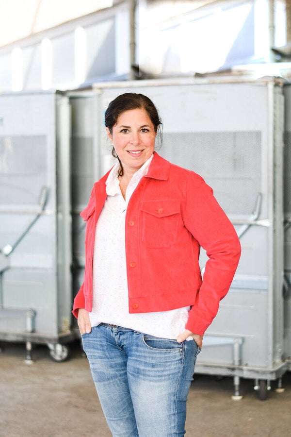 Die Jacke wird gefüttert genäht, hat aufgesetzte Taschen im Brustbereich, sie ist leicht tailliert und besticht durch die klassische Knopfleiste und den Kragen.