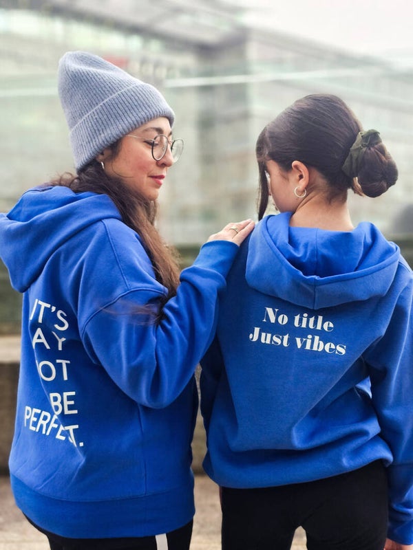 Der Hoodie ist oversize geschnitten und wird mit Ärmel- bzw. Saumbündchen genäht.