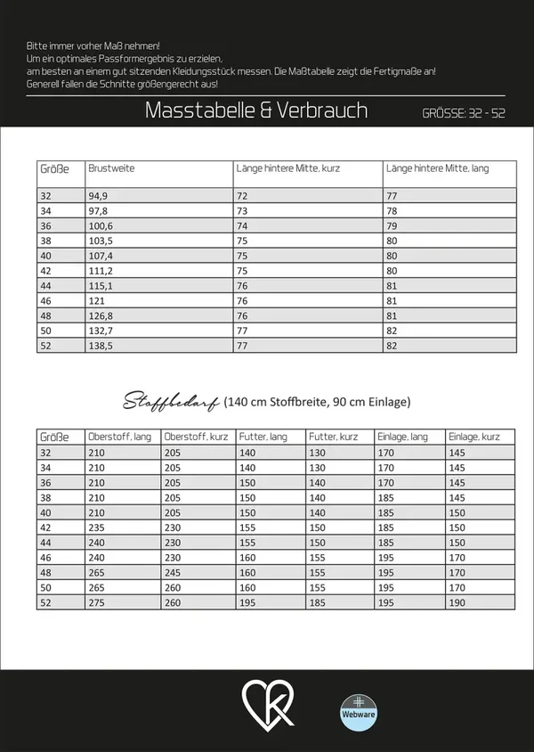 Dieses Set enthält alle Schnittmusterteile in den Größen 32-58 in Farbe auf einem DIN A0 Bogen und eine ausführlich bebilderte Nähanleitung als DIN A4 Broschüre. Unsere Schnittmuster sind auf einem DIN A0 Bogen gedruckt. Je nach Anzahl und Grösse der Schnittmuster überlagern sich diese und müssen kopiert werden.