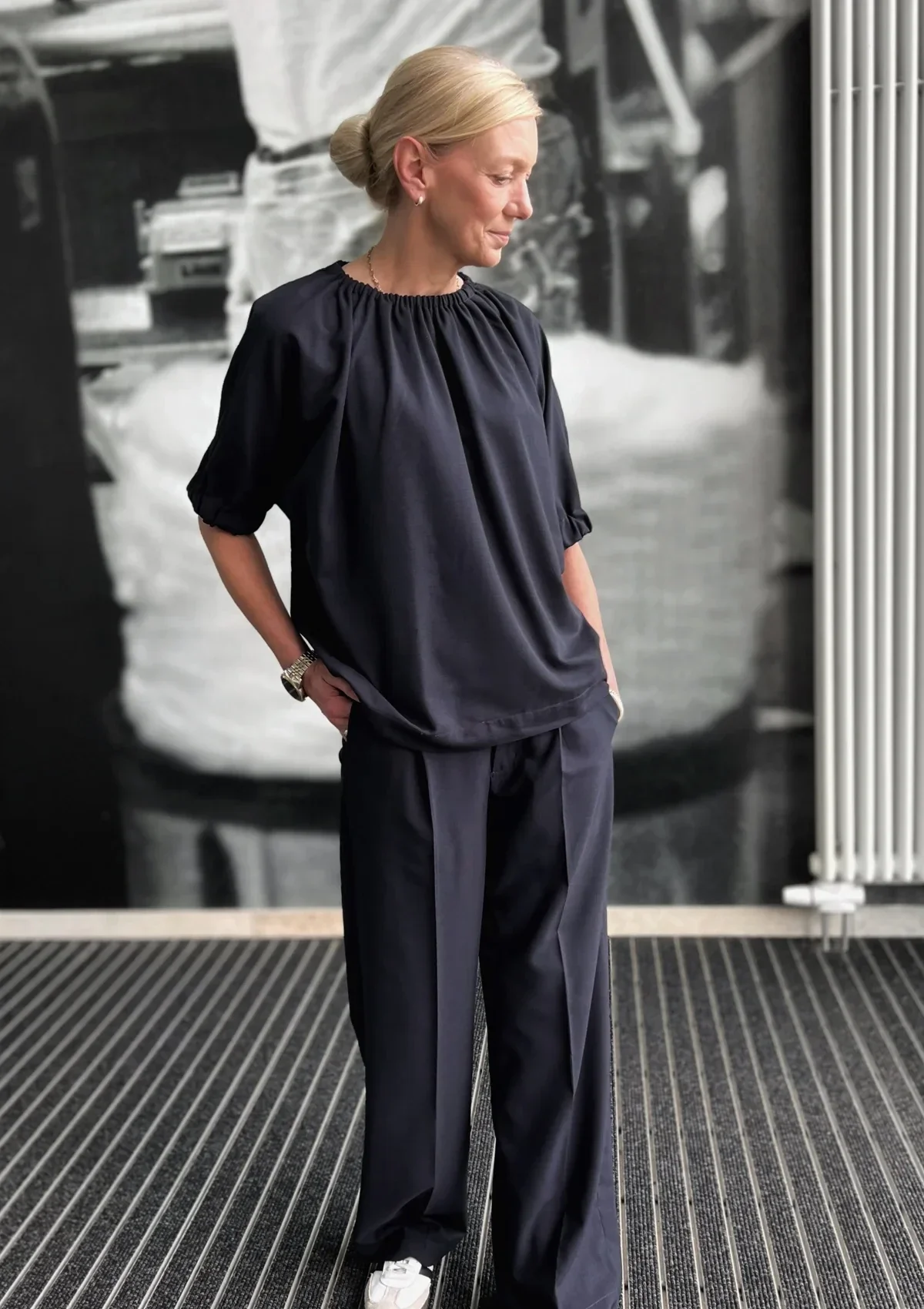 Ein Kleid so gemütlich, dass man es gar nicht mehr ausziehen möchte? Da kann es sich nur um unser Kleid Rajka mit Fledermausärmeln handeln! Luftig, aus leichter Webware genäht, umschmeichelt es den Körper und garantiert absolutes Wohlbefinden beim Tragen. Die flatternden lässigen Fledermausärmel werden durch einen Gummizugbund am Saum gerafft und auf Form gebracht. Auch am Ausschnitt befindet sich ein Gummizug, der die Weite des Oberteils leicht kräuselt und dem Kleid einen femininen Look verleiht. Zum Saum hin verläuft das Kleid dezent schmaler und hat praktische Eingrifftaschen in der seitlichen Teilungsnaht versteckt. Die schmalen Seitenteile eignen sich auch sehr gut für kontrastierende Stoffelemente. Als Variante kann Rajka auch noch als lässiges Fledermausshirt überzeugen. Ein perfekter Begleiter zu Shorts, Röcken und weiten Hosen.
