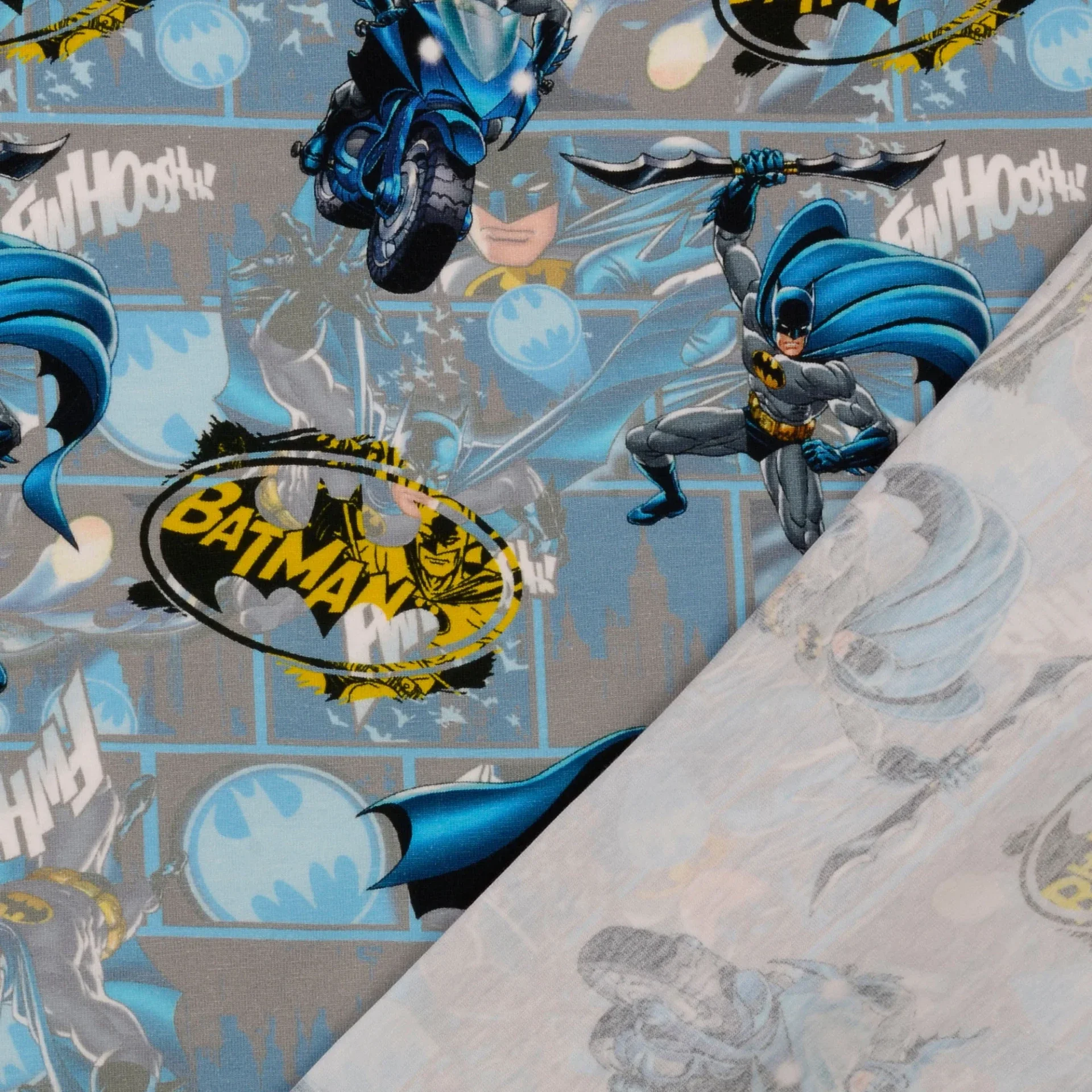 Graugrundiger Baumwolljersey mit Batman- Motiv.