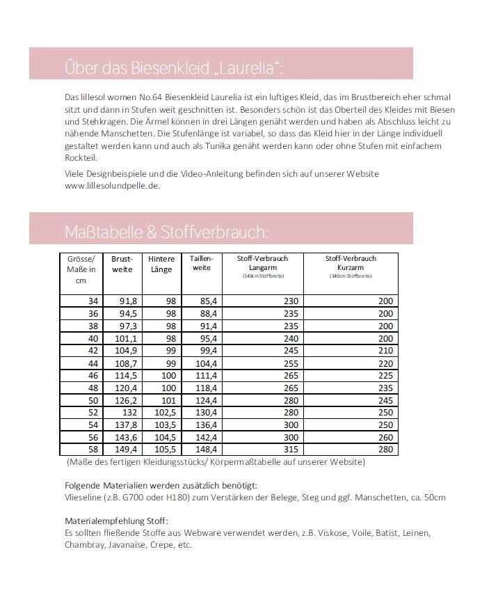 Schnittmuster Bliesen-Kleid & Tunika "Laurelia" lillesol women No.64