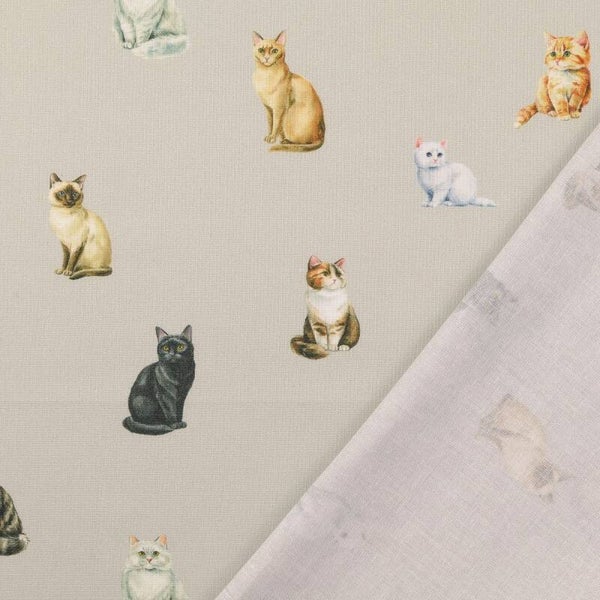 Baumwollstoff Katzen grau