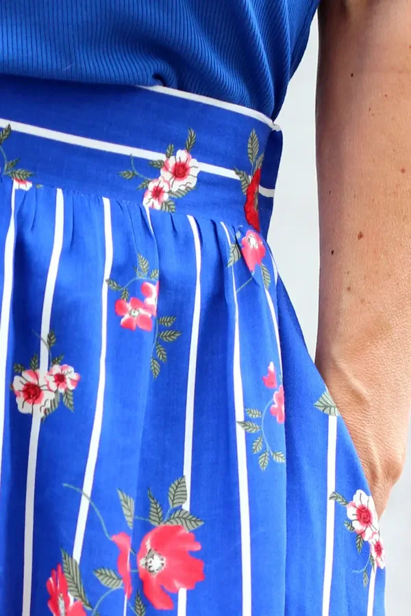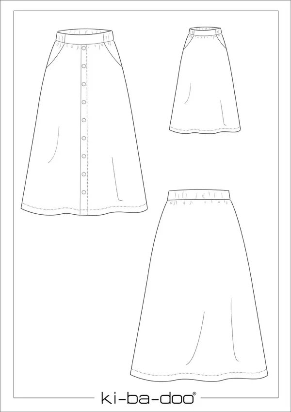 Luftig, lässig, elegant....Lange Röcke sind schon lange im Trend und werden uns sicher auch noch lange modisch begleiten. Das freut uns sehr, denn nichts trägt sich entspannter als ein langer Rock im Sommer. Der Rock Pikka hat eine angenehme Länge, denn er endet leicht oberhalb der Knöchel, so können wir auch noch unsere schönen neuen Ballerina oder Sandalen herzeigen. Mit seinen seitlichen Eingrifftaschen und dem unterteilten Gummizugbund lässt er keine Wünsche an Komfort offen. Durch die optionale Knopfleiste, die man als schickes Design-Element aufnähen kann, lässt sich der Look des Rockes toll variieren. Genäht wird Pikka am besten aus weich fallenden Stoffen wie Viskose, Leinen, Seide oder Satin.