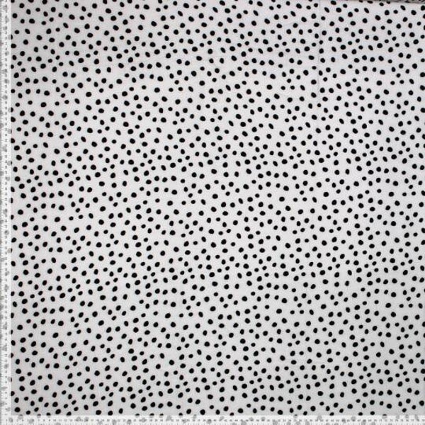Dieser gewebte weiße Stoff mit schwarzen Punkten besteht aus 100% Ecovero Viskose. Ecovero ist ein leichter, glänzender und atmungsaktiver Stoff, der sich angenehm anfühlt. Ideal für den Sommer. Er wurde nach dem OEKO-TEX Standard 100 umweltfreundlich hergestellt. Der Stoff ist 130 cm breit und wiegt 130 g/m2.