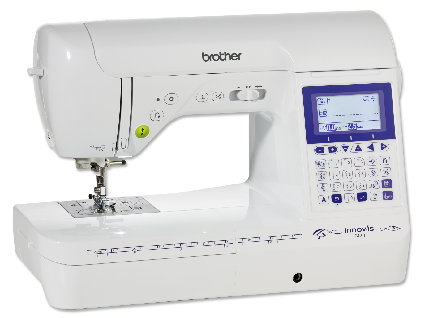 Alle wichtigen Nähinformationen werden auf dem LC-Display übersichtlich angezeigt. Die Innov-is F420 verfügt über ein einfarbiges Display.