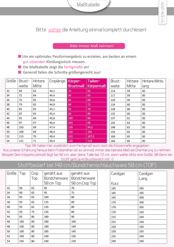 Das Kopieren und die Weitergabe der Anleitung und des Schnittmusters sowie die Massenproduktion sind nicht gestattet.