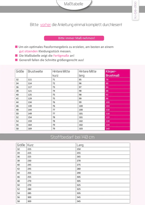 Das Kopieren und die Weitergabe der Anleitung und des Schnittmusters sowie die Massenproduktion sind nicht gestattet.