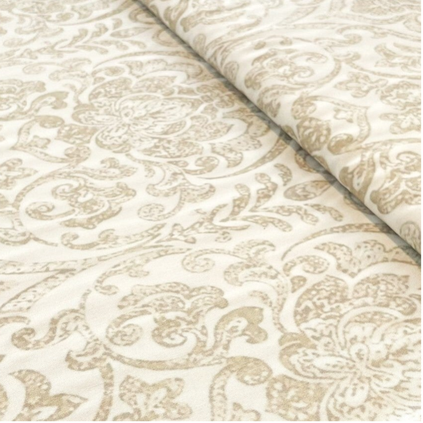 Edler Viskosestoff in creme mit Ornamentmuster in beige. Vielseitige Meterware für stilvolle Mode und hochwertige Accessoires.