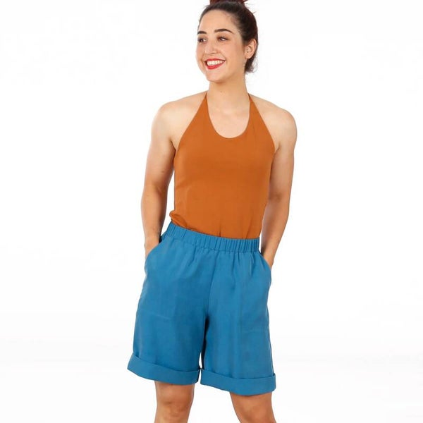 Ein Urlaub ohne Shorts? Das wird undenkbar, wenn Du einmal mit FRAU MARTE unterwegs warst. Diese Hose muss einfach immer mit, egal ob beim Stadtbummel oder am Strand. Mit FRAU MARTE bist Du immer richtig angezogen. Die Shorts punktet durch einen unkomplizierten Gummibund, eine coole kniefreie Länge und praktische Taschen vorne und hinten. Den Umschlag am Saum kannst Du auch einfach wegslassen, dann kannst Du noch schneller zurück in die Sonne!